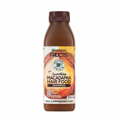 شامپو صاف کننده ماکادمیای گارنیه هیر فود Garnier Smoothing Macadamia  حاوی 98 درصد عصاره های طبیعی از میوه های سوپر فودز جهت صاف کنندگی، رفع وز و درخشندگی موهای کدر و نامنظم است. شامپو صاف کننده گارنیه حاوی روغن ماکادمیا (فندق استرالیایی) جهت تغذیه و صافی موهای دارای وز و فر است و به سرعت موها را منظم و قابل مدیریت می کند، علاوه بر این حاوی روغن نارگیل جهت احیای سلامتی، رساندن مواد مغذی مورد نیاز فیبر مو و افزایش انعطاف پذیری آن می باشد