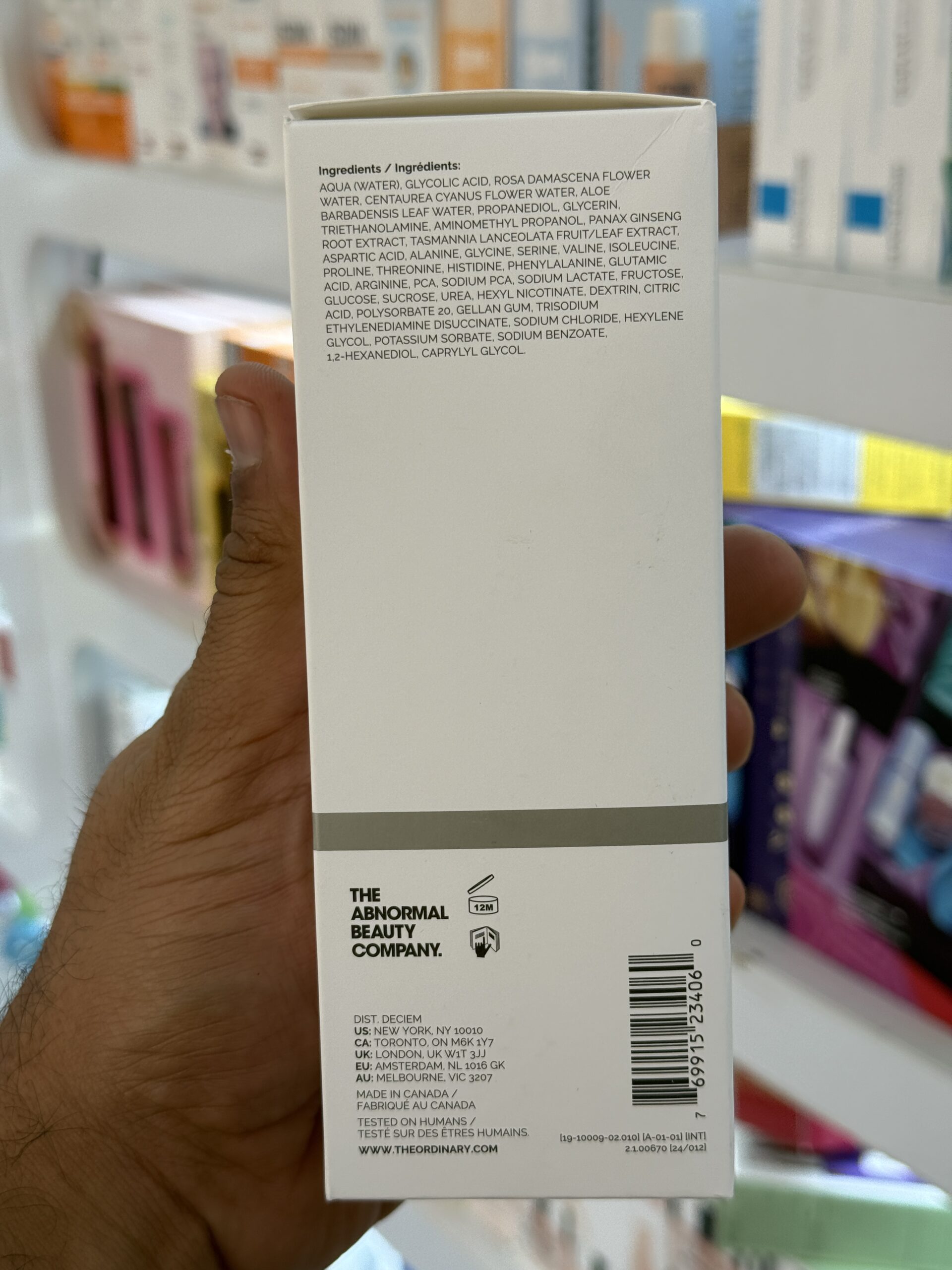 تونر گلیکولیک اسید The Ordinaryدارای ماده موثر گلیکولیک اسید می باشد که با لایه برداری و حذف سلولهای مرده و رطوبترسانی به پوست موجب ترمیم و بازسازی آن می شود و به مرور لک های پوستی و جای جوش ها را کمرنگ کرده و علائم پیری پوست مانند خطوط و چروک های سطحی را بهبود می دهد. این تونر حاوی ریشهی جنسینگ، آلوئه ورا و سرشار از آمینواسیدها می باشد که پوست را تغذیه کرده و با آبرسانی و تسکین پوست مانع ایجاد التهاب و سوزش پوست در اثر لایه برداری می شوند و همچنین با تقویت سد دفاعی پوست به افزایش انعطاف پذیری و مقاومت پوست کمک می کند.