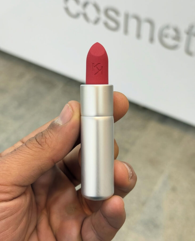رژ لب کیکو در داخل بسته بندی دارای زوایای کاملاً جدید برای استفاده راحت تر از رژ لب بر روی لب ها می باشد. نام برند با ظرافت در بالای رژلب حک شده است تا به ایجاد برجستگی کمک کند.