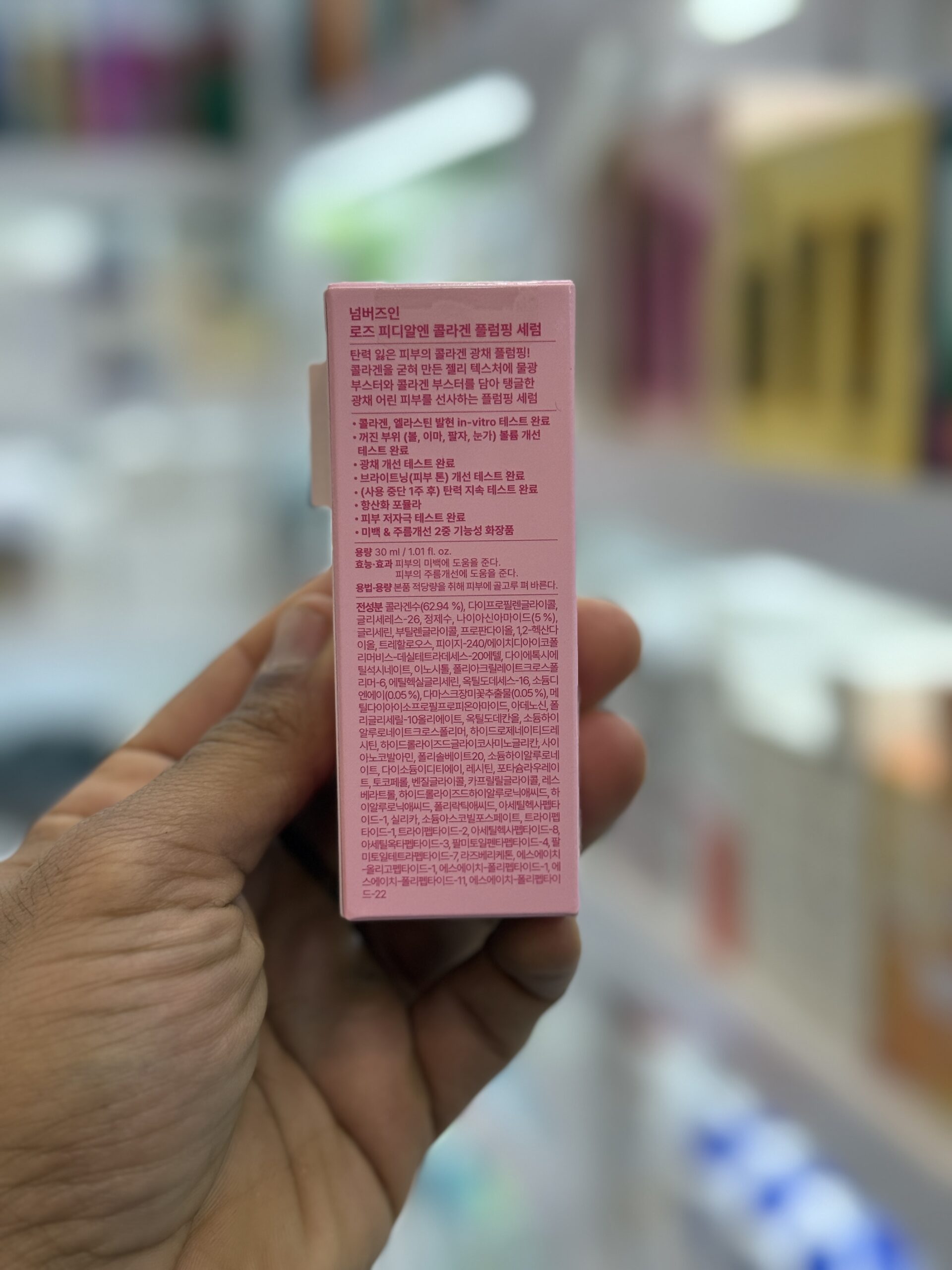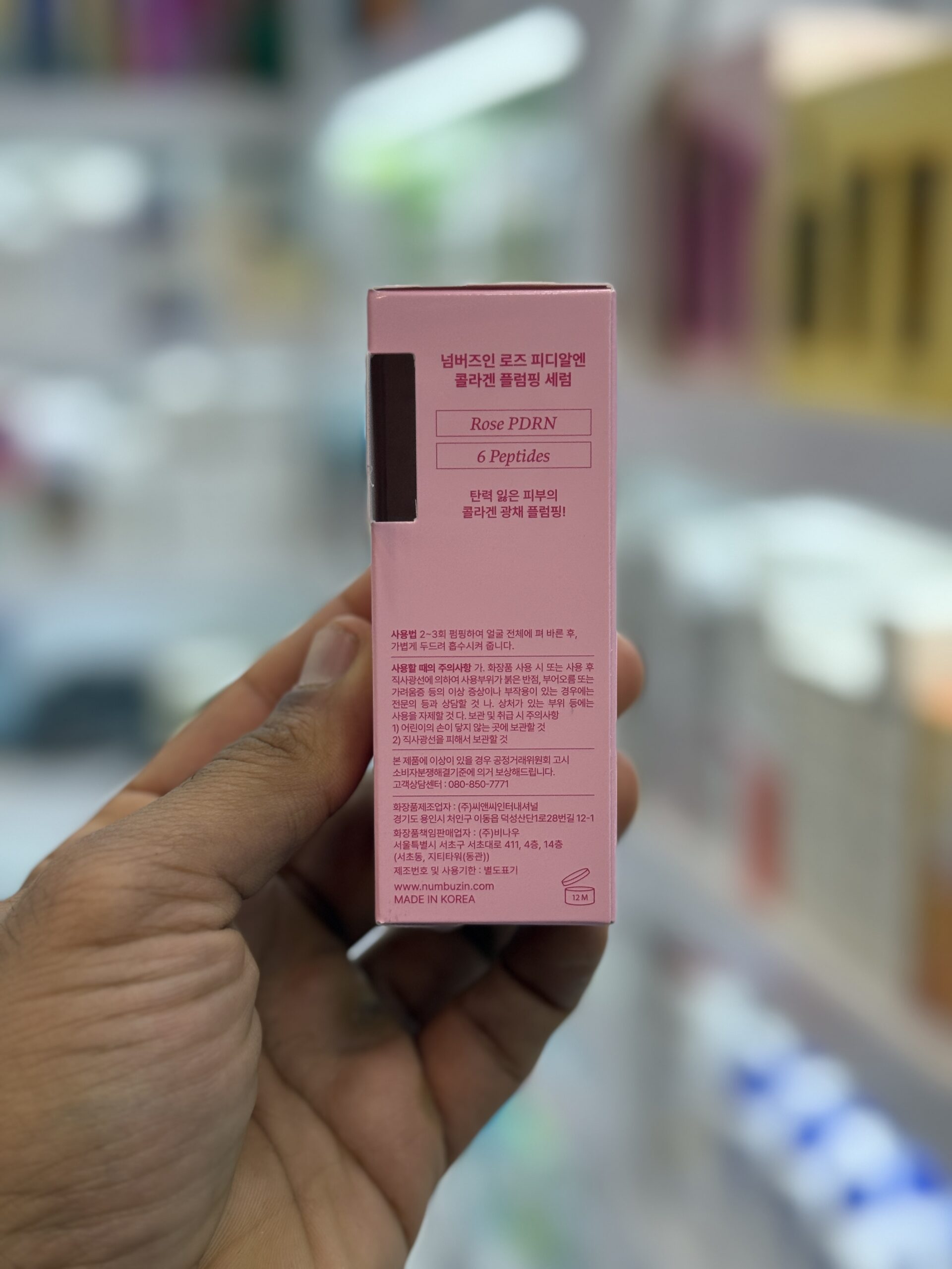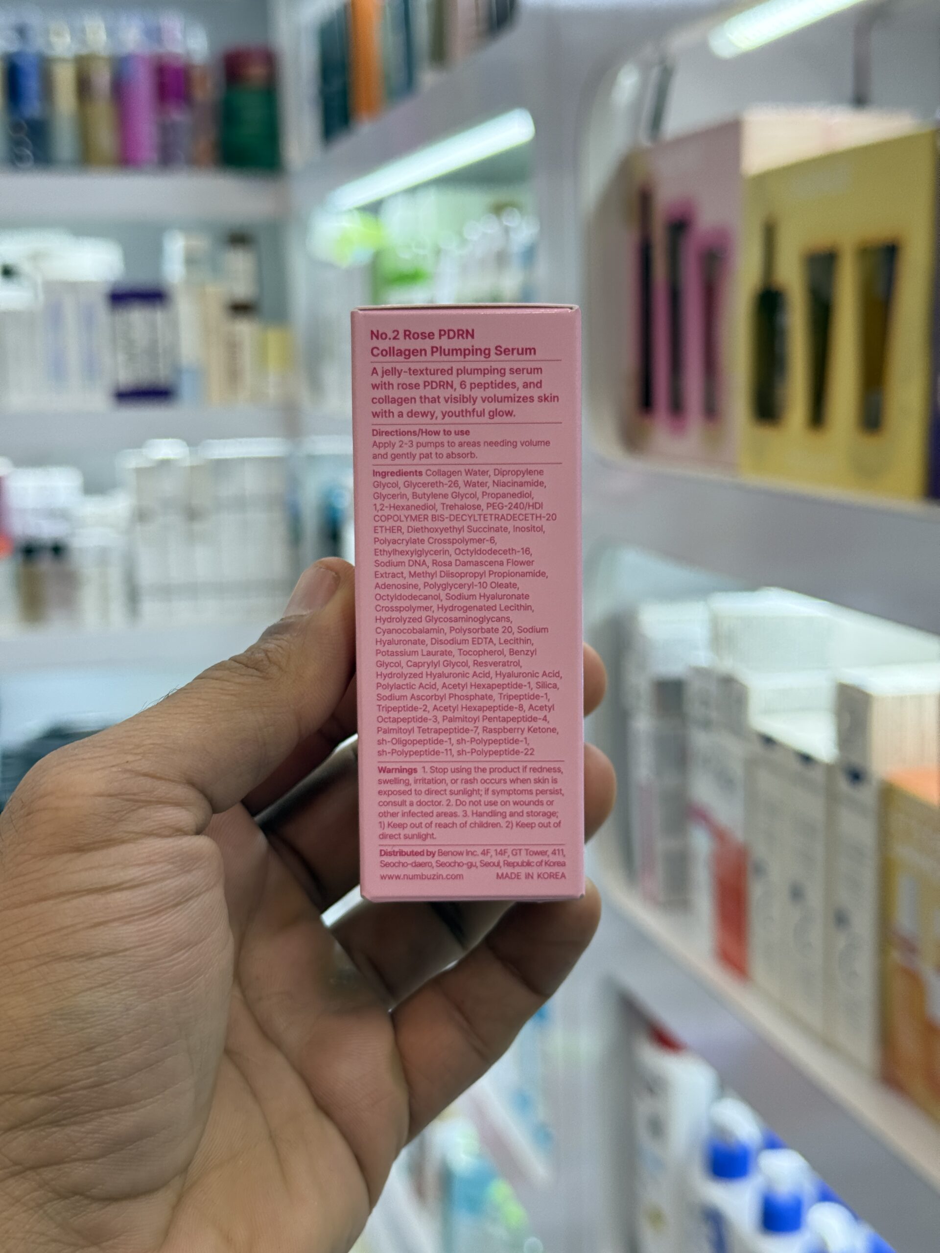 سرم حجم دهنده و ضد چروک ROSE PDRN و کلاژن نامبوزین، با ترکیب منحصر به‌ فرد Rose PDRN، کلاژن و پپتیدهای فعال، پوست را از عمق بازسازی کرده و ظاهری پر،حجیم، الاستیسیته، محکم و درخشان به آن می‌بخشد. این سرم الهام‌ گرفته از مراقبت‌ های کلینیکی ضدپیری است و با بافتی سبک و جذب سریع، خطوط ریز، خشکی و افتادگی پوست را کاهش می‌دهد تا پوستی صاف، شفاف و جوان‌ تر نمایان شود.