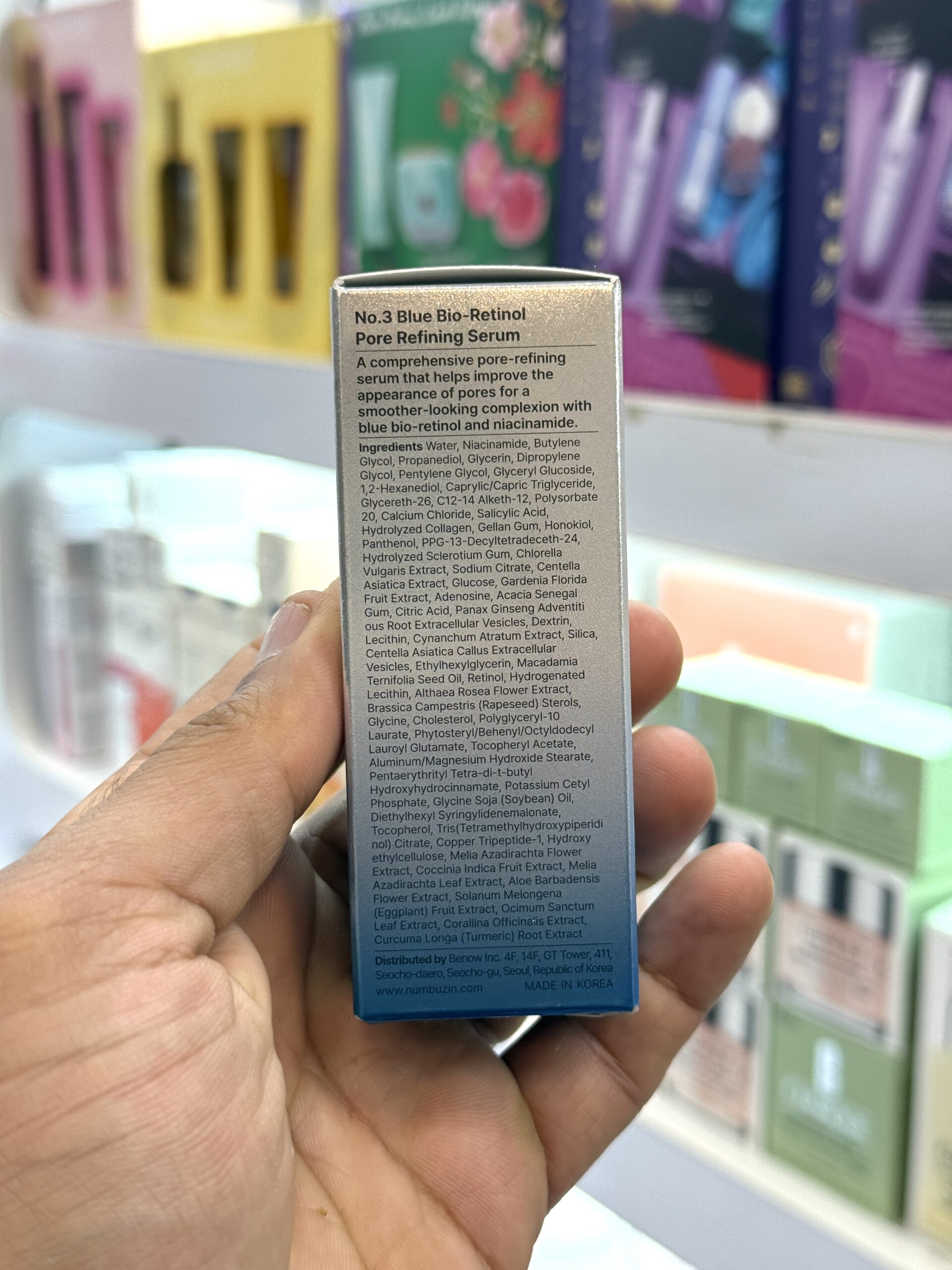 | نام محصول | سرم کنترل منافذ رتینول آبی شماره ۳ نامبوزین (Numbuzin No.3 Blue Bio-Retinol Pore Refining Serum) |